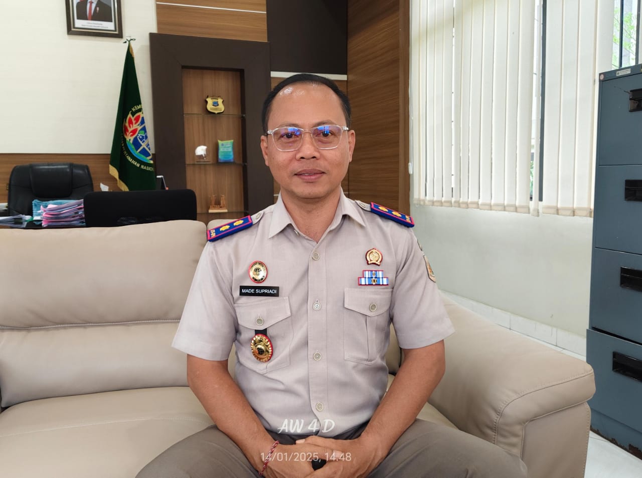 Kepala BPN Kotabaru I Made Supriadi selaku ketua Tim pengadaan tanah Bandara Gusti Syamsir Alam memberikan klarifikasi terkait dinamika yang berkembang, paska musyawarah pertama, di ruang kantor BPN, Megasari, Kec. Pulau Laut Utara, Kab. Kotabaru, Selasa (14/01/25)