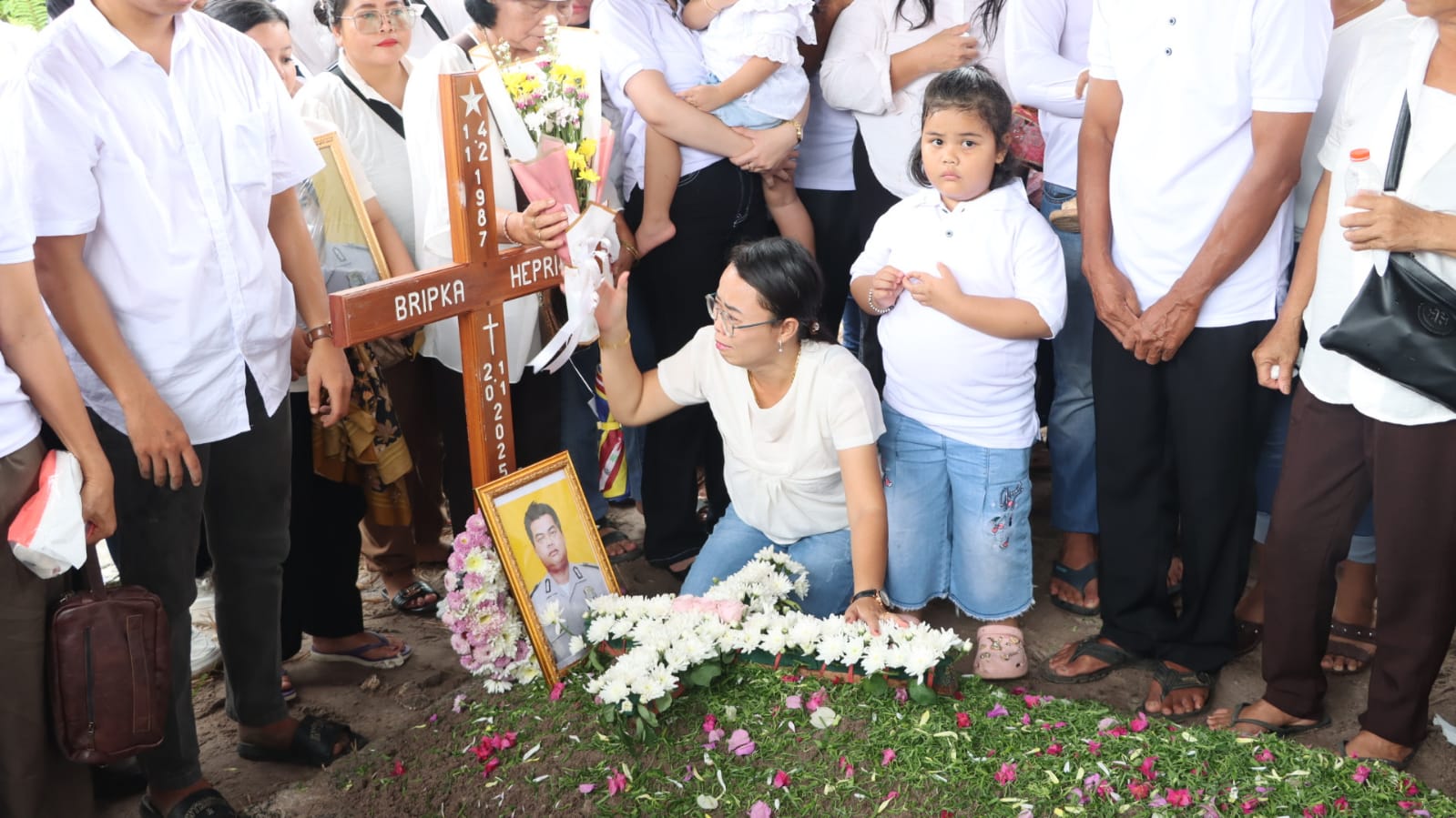 Isak tangis keluarga, kerabat, dan rekan sejawat pecah saat jenazah almarhum dimakamkan dengan upacara kedinasan Polri sebagai penghormatan atas dedikasi dan pengabdiannya.