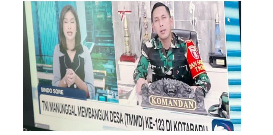 KOTABARU, Adahabar.com- Dandim 1004 Kotabaru Letkol Inf Bayu Oktaviano Sudibyo melakukan video conference (vicon) bersama dengan iNews dan Sindonews dalam rangka pelakasanaan kesiapan Program TNI Manunggal Membangun Desa (TMMD) ke-123.