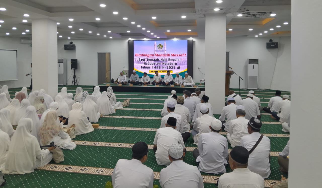 KOTABARU- Asisten I Sekda Bidang Pemerintahan dan Kesra H Minggu Basuki secara langsung membuka acara manasik haji, Sabtu 19 April 2025.