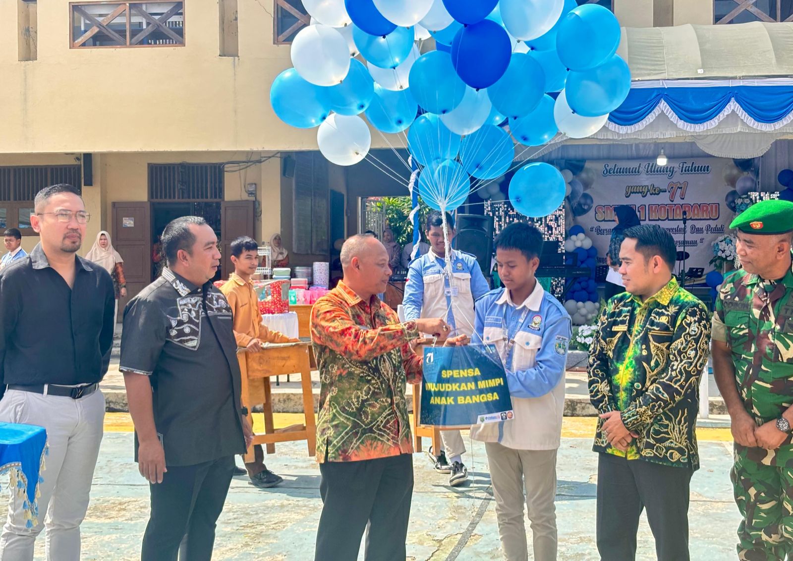 Acara berlangsung di halaman sekolah dengan dihadiri sejumlah Pejabat Daerah, di antaranya Bupati Kotabaru Muhammad Rusli, yang diwakili Kepala Dinas Perhubungan Khairian Ansari, Plt. Kadisdikbud Taufikurrahman, Kepala Diskominfo Gusti Abdul Wakhid.