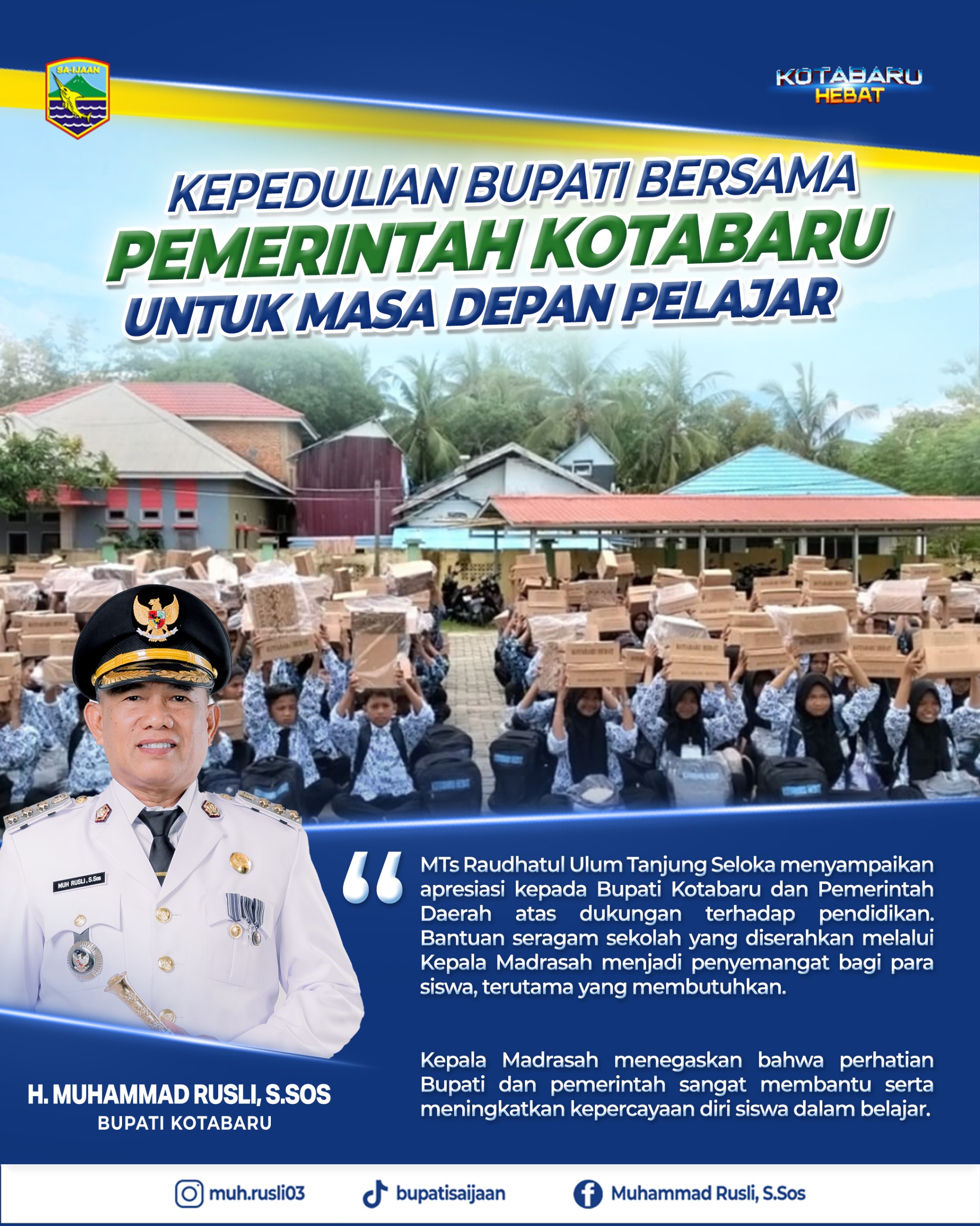 “Program ini bukan hanya sekedar distribusi perlengkapan, tetapi merupakan wujud nyata perhatian pemerintah terhadap masa depan generasi muda di Kotabaru,” ucapnya.