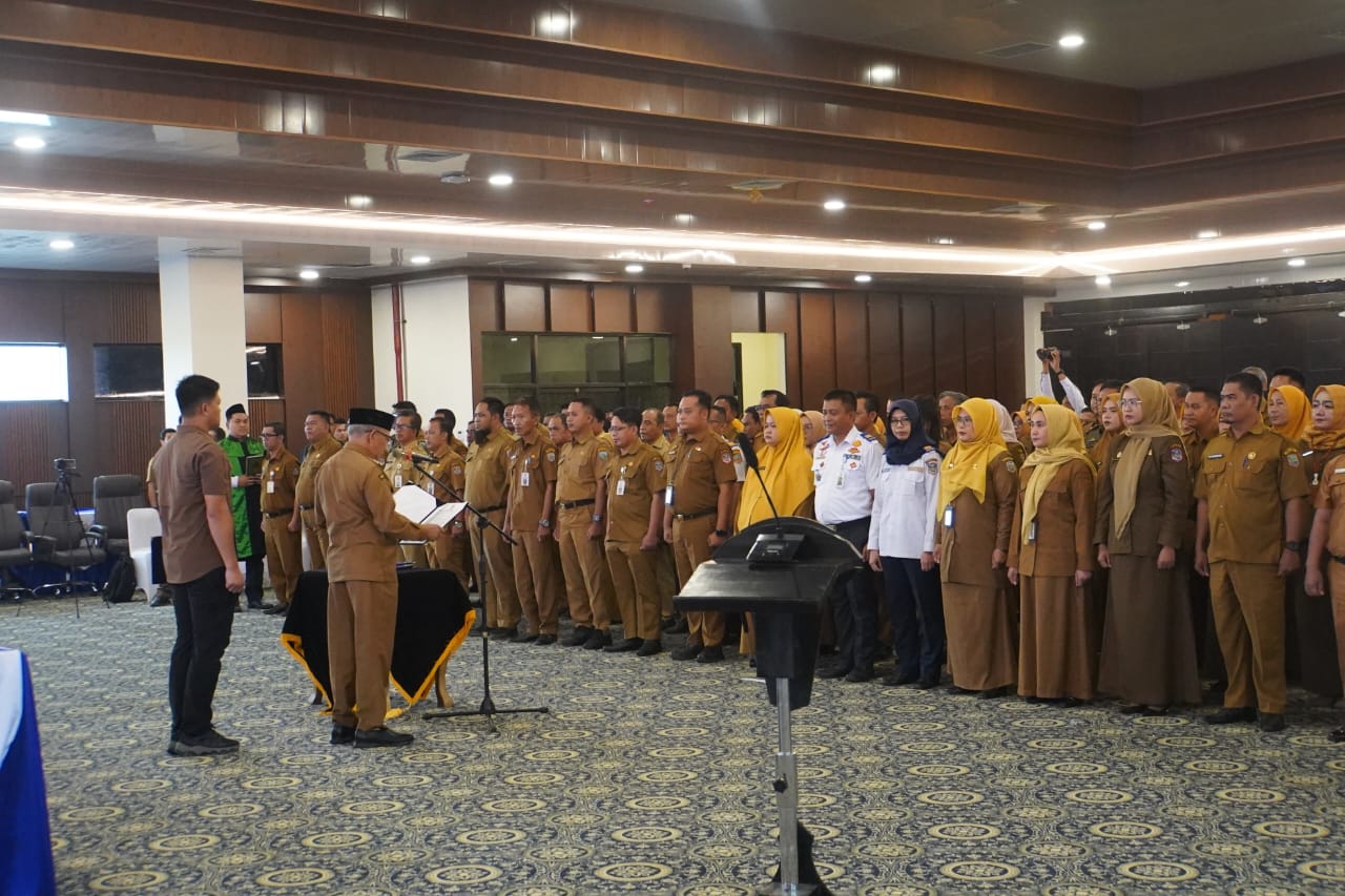 Dalam sambutannya, Bupati Rusli menyampaikan ucapan selamat kepada para pejabat yang dilantik, seraya menekankan pentingnya tanggung jawab dan semangat baru dalam menjalankan amanah jabatan.